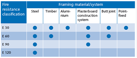 *EI: Provides a physical barrier against flames, got gases and smoke as well as thermal isolation.